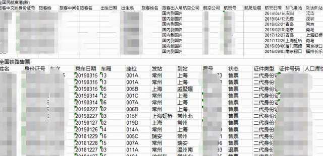 再支付了1500元,则很快查到了自己乘坐飞机、火车,以及入驻酒店、房间号的记录信息,包括出入境信息。